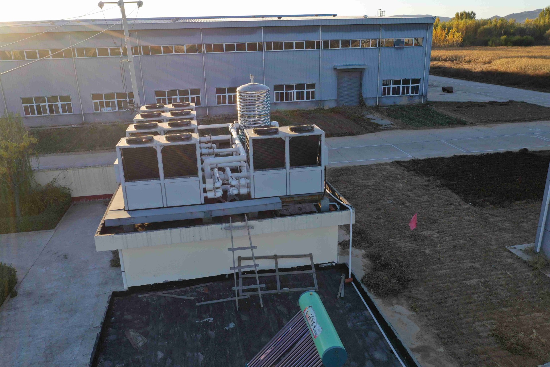 建筑面積4000㎡,建筑層高3層,主體承重墻37mm、外墻體有保溫;采暖形式為地?zé)岵膳⒃腥济哄仩t更換為天舒空氣源熱泵系統(tǒng)。整套系統(tǒng)采用天舒超低溫空氣源熱泵采暖機組24匹共五臺。全套設(shè)備安裝在原有鍋爐房屋頂,在不變更原有采暖管道的同時采用閉式系統(tǒng)設(shè)計,間接循環(huán)方式的全自動化智能系統(tǒng)設(shè)計。