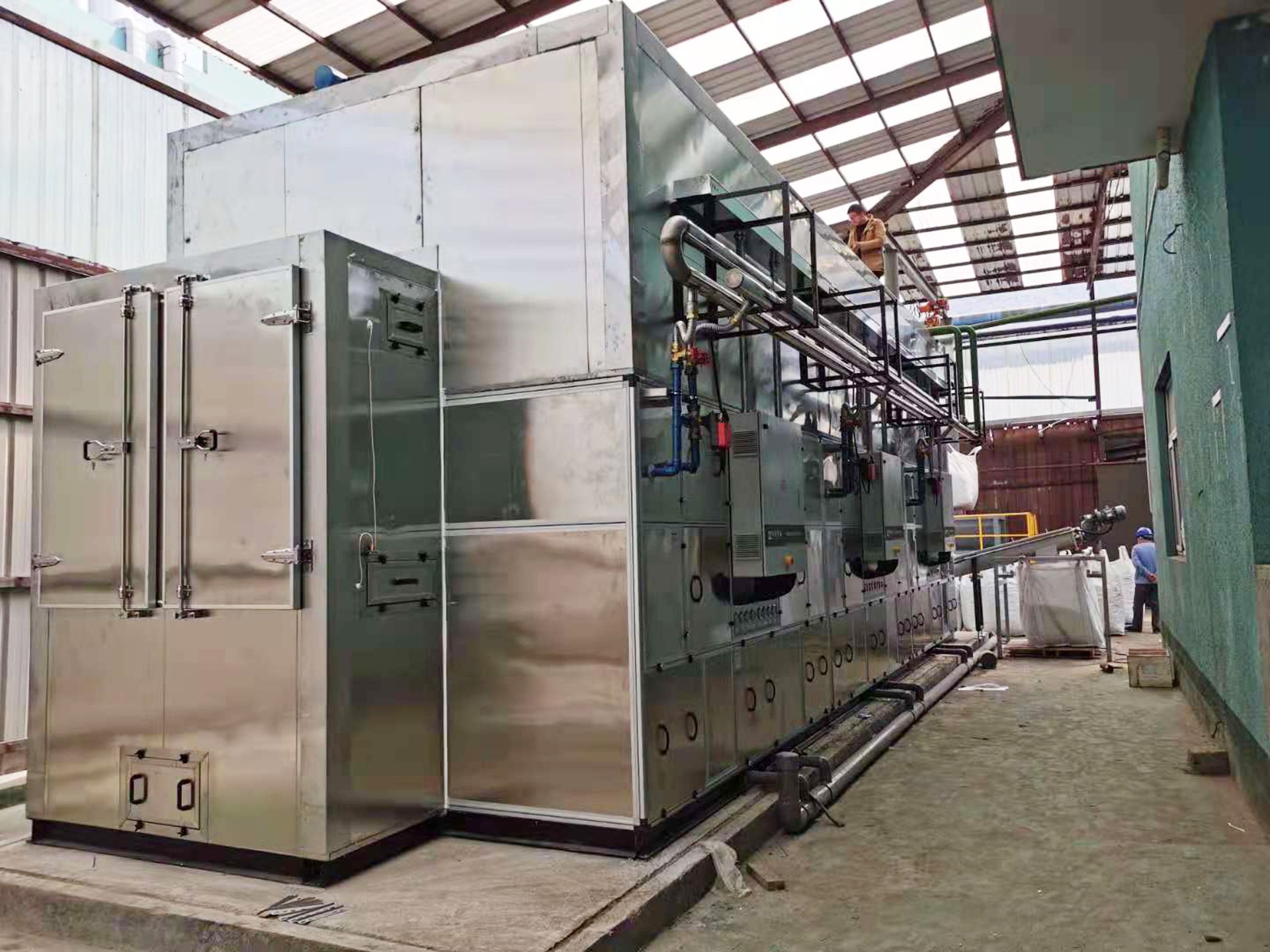 本項目使用了天舒熱泵閉式污泥干化機(jī)組SC-200ⅡJ4dXx3一套, 對污泥進(jìn)行低溫深度干化處理。本項目針對該污水廠產(chǎn)生的電渡污泥進(jìn)行減量和穩(wěn)定化處理, 每日處理產(chǎn)生含水率65%的污泥25噸, 處理到30%, 大大減低企業(yè)處理成本, 該項目采用了先進(jìn)的自動除塵技術(shù), 提高了效率, 保證了機(jī)組的連續(xù)運行。