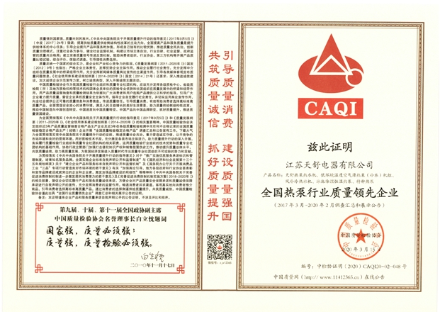 全國(guó)熱泵行業(yè)質(zhì)量領(lǐng)先企業(yè)