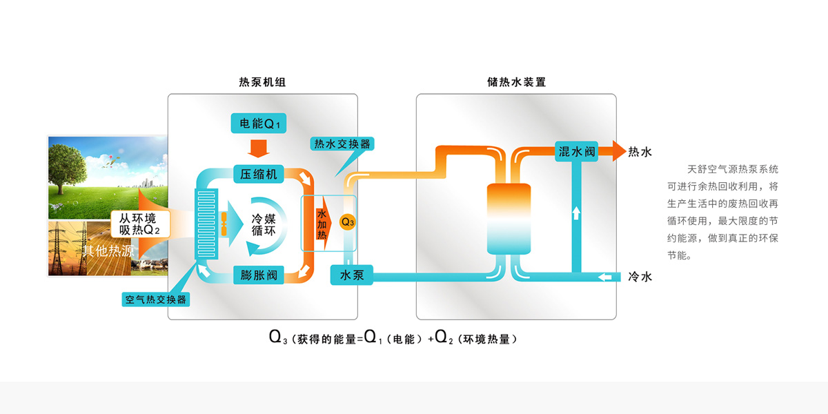 洗浴后的廢水被收集起來,回收其中的廢熱,廢水本身降至低熱溫度下被排出,收集的熱量通過熱泵再進(jìn)行循環(huán)進(jìn)行熱水制造。