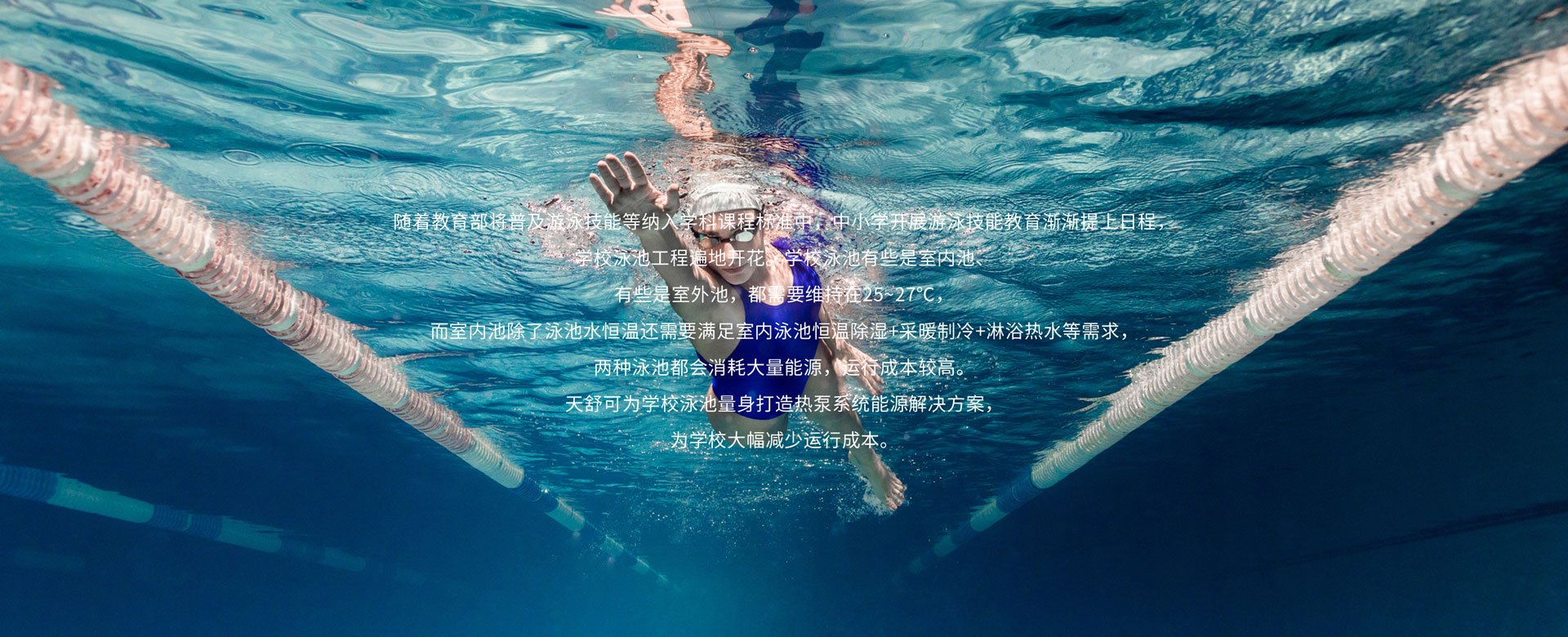 學(xué)校一直將學(xué)生的身心健康放在首位,天舒泳池熱泵系統(tǒng)維持游泳環(huán)境的溫濕度動態(tài)平衡,創(chuàng)造健康舒適的游泳環(huán)境。